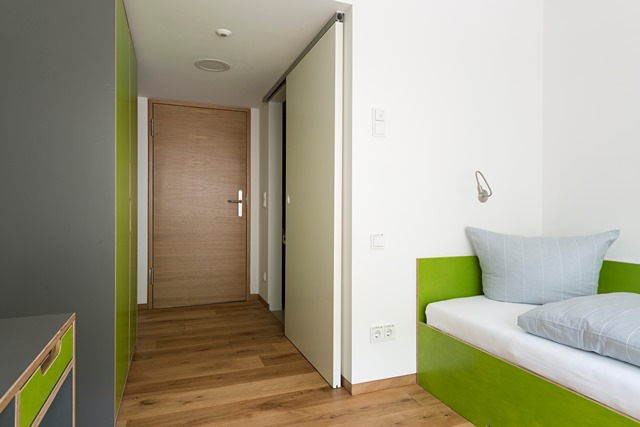 Wir bieten: • Zimmer in unterschiedlichen Kategorien. Alle Zimmer haben Internet,- Fernseh- und Telefonanschluss. • Kino, Gemeinschafts-, Fitnessräume, Sporthallenmitbenutzung, Billardzimmer und Teeküchen • Ein Bierstüberl, welches von einem externen Betreiber geführt wird und Mo-Do von 19.00 bis 24.00 Uhr geöffnet hat, kann von allen Internatsbewohnern besucht werden. • Aktionen wie Tanz-, Yoga- und Kochkurse